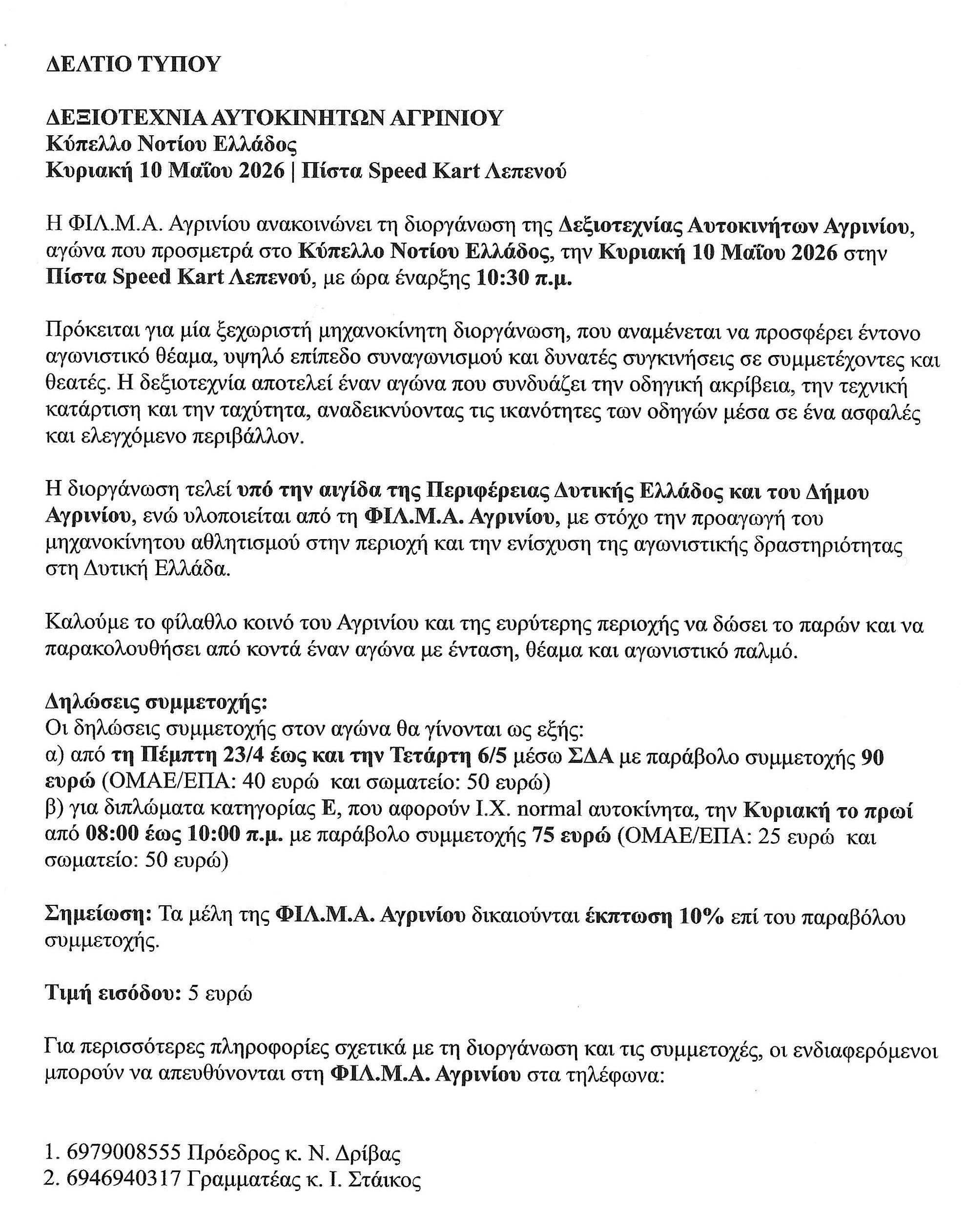 ΔΕΞΙΟΤΕΧΝΙΑ ΑΥΤΟΚΙΝΗΤΩΝ ΑΓΡΙΝΙΟΥ